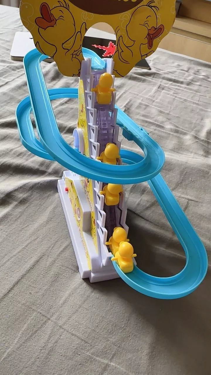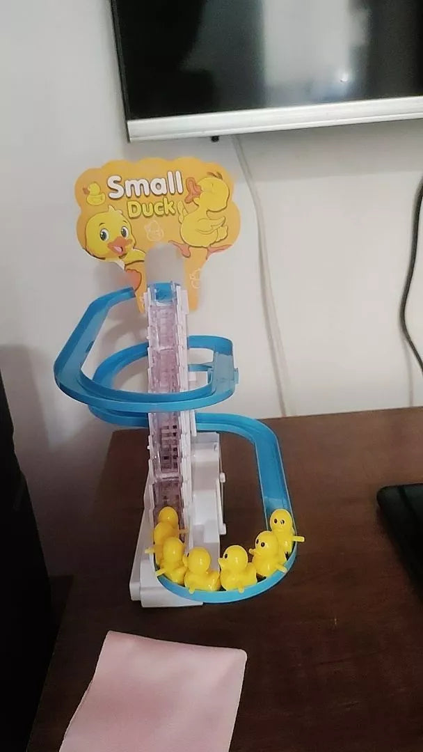 Luzes coloridas, música animada e movimento contínuo fazem com que a criança fique curiosa, encantada e concentrada assistindo os patinhos subirem e descerem sem parar.